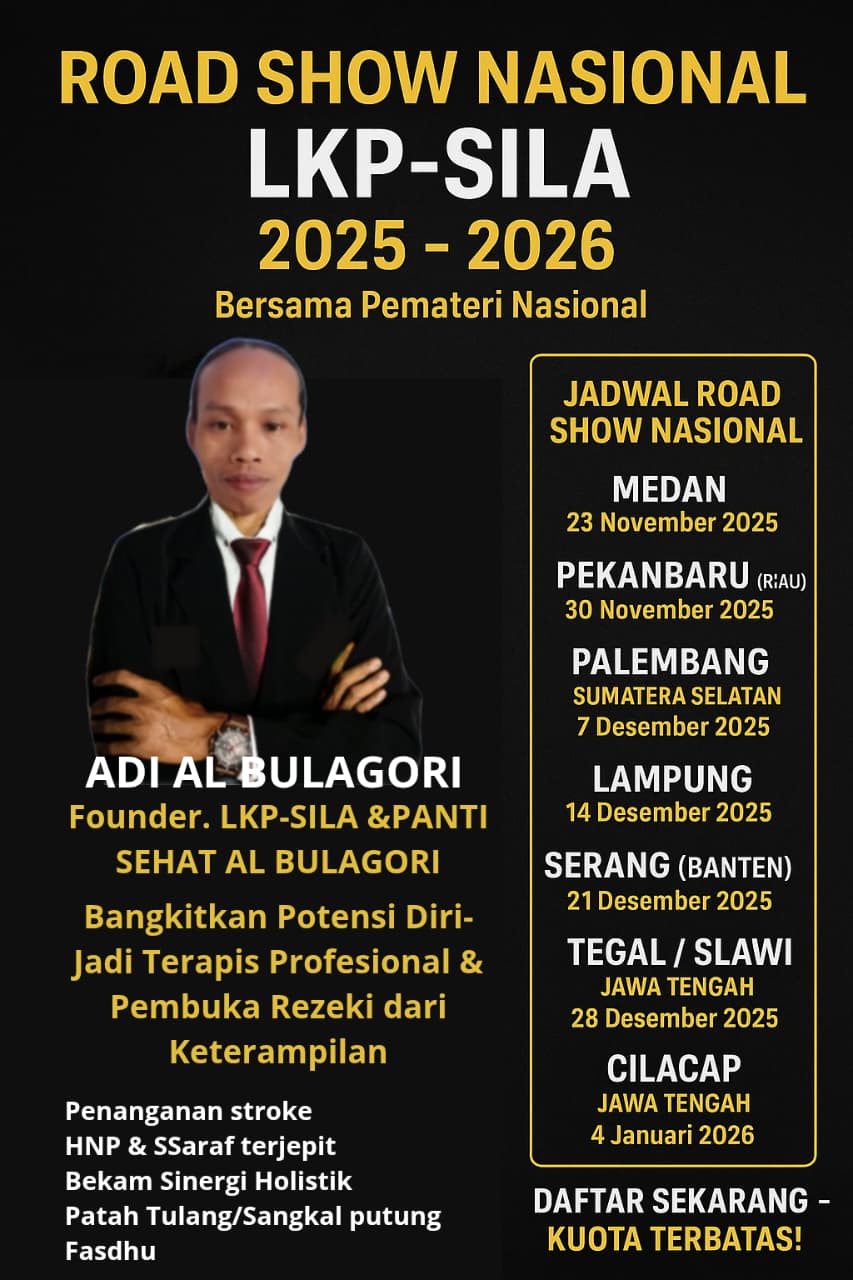 LKP–SILA menggelar Road Show Pelatihan Terapi Tradisional Nasional 2025 di berbagai kota — mulai dari Medan, Riau, Palembang, Lampung, hingga…